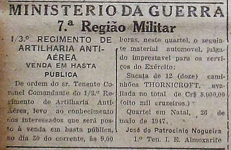 sexta-feira, 30 de maio de 1947, surgiu nos jornais da capital potiguar uma
